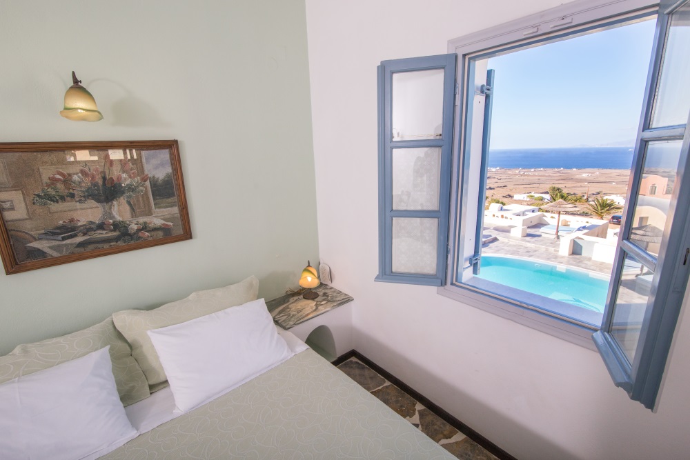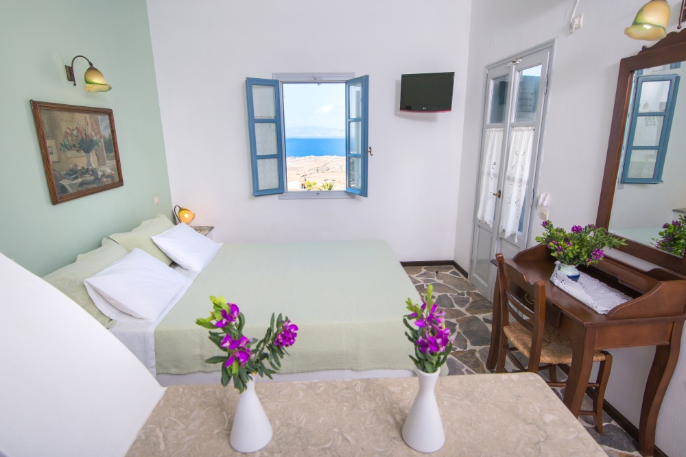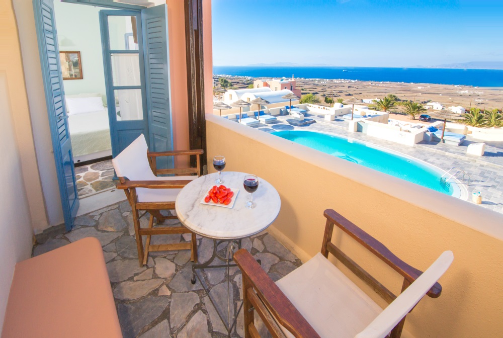 Enjoy moments of relaxation and calm in your private balcony with view over the swimming-pool and the Aegean sea and let yourself enjoy the beauty of the landscape that is unfolded in front you.